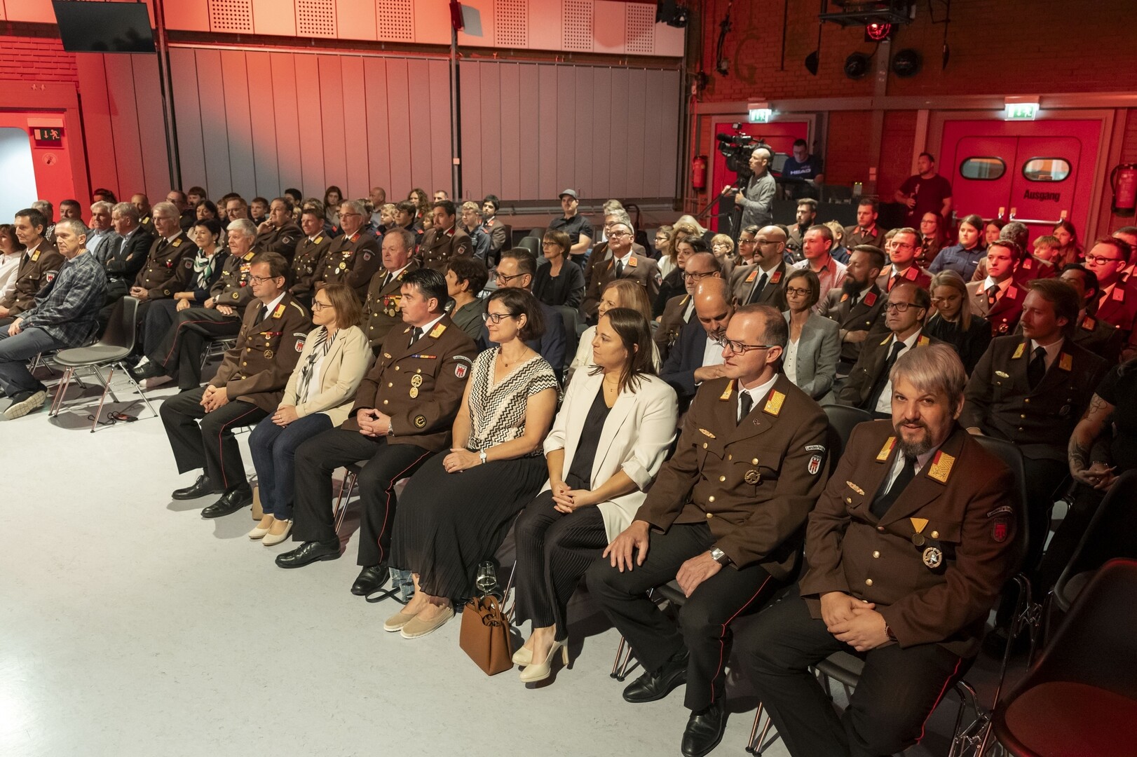 Zahlreiche Ehrengäste haben sich unter die Feuerwehrmitglieder gemischt. Moderatorin Conny Bürgler konnte Bundesministerin Karoline Edtstadler, Landeshauptmann Wilfried Haslauer und Staatssekretärin Claudia Plakolm begrüßen. Als Repräsentanten für das österreichische Feuerwehrwesen waren unter anderem Feuerwehrpräsident Robert Mayer sowie die drei Vizepräsidenten Rudolf Robin, Günter Trinker und Mario Rauch anwesend. Auch internationale Gäste sind der Einladung nach Österreich gefolgt: Der Vorsitzende der Internationalen Jugendleiterkommission Jörn-Hendrik Kuinke (D), der Landesfeuerwehrkommandant aus Liechtenstein Peter Ospelt sowie der Landesfeuerwehrpräsident von Südtirol, Wolfram Gapp waren anwesend.